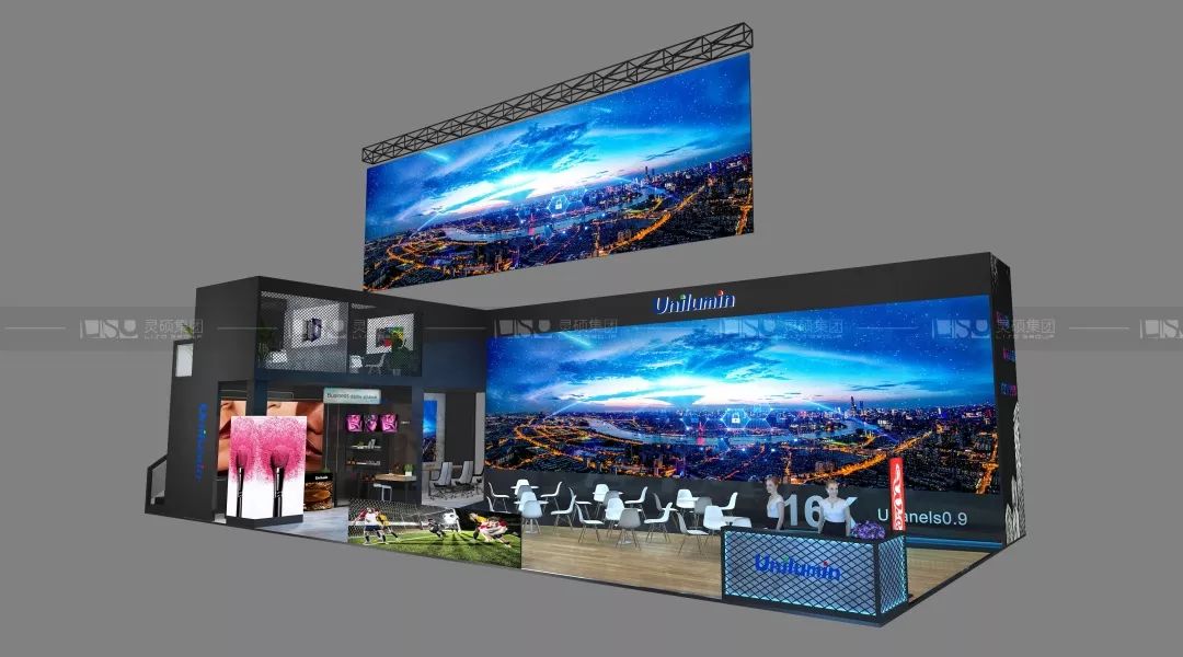 靈碩設(shè)計團隊在前期深入研究了洲明科技的品牌及產(chǎn)品,終以時尚黑為主基調(diào),為展臺奠定了高級感、國際感。