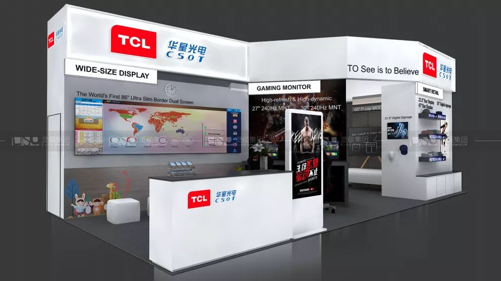 TCL華星光電作為一家專注于半導體顯示領(lǐng)域的創(chuàng)新型科技企業(yè),本次攜眾多高尖新產(chǎn)品亮相展會。靈碩設(shè)計團隊以素雅潔白的展臺結(jié)構(gòu)為基礎(chǔ),合理規(guī)劃參觀動線及產(chǎn)品陳列,重點突出華星光電的精湛技術(shù)、精致產(chǎn)品、精益制造。